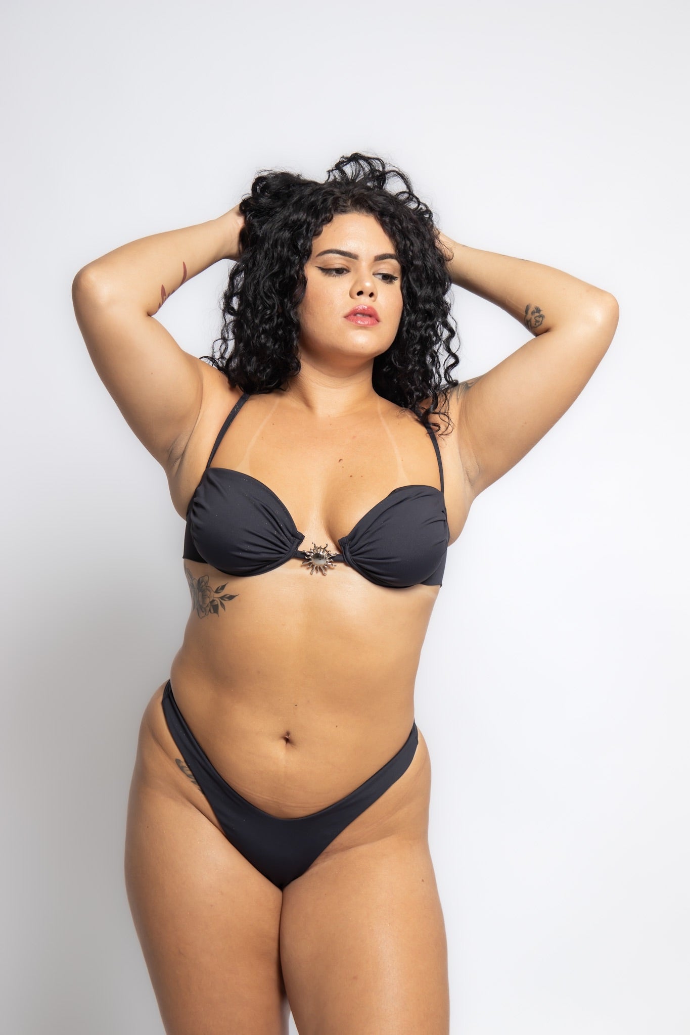 O Biquíni Noite de Prata é a tradução perfeita da elegância minimalista com um toque de mistério. Na clássica cor preta, ele transmite sofisticação e poder, realçando a beleza natural com um visual atemporal e irresistível. Seu design moderno valoriza o corpo com sutileza, garantindo um caimento impecável em todos os tipos de curvas.
